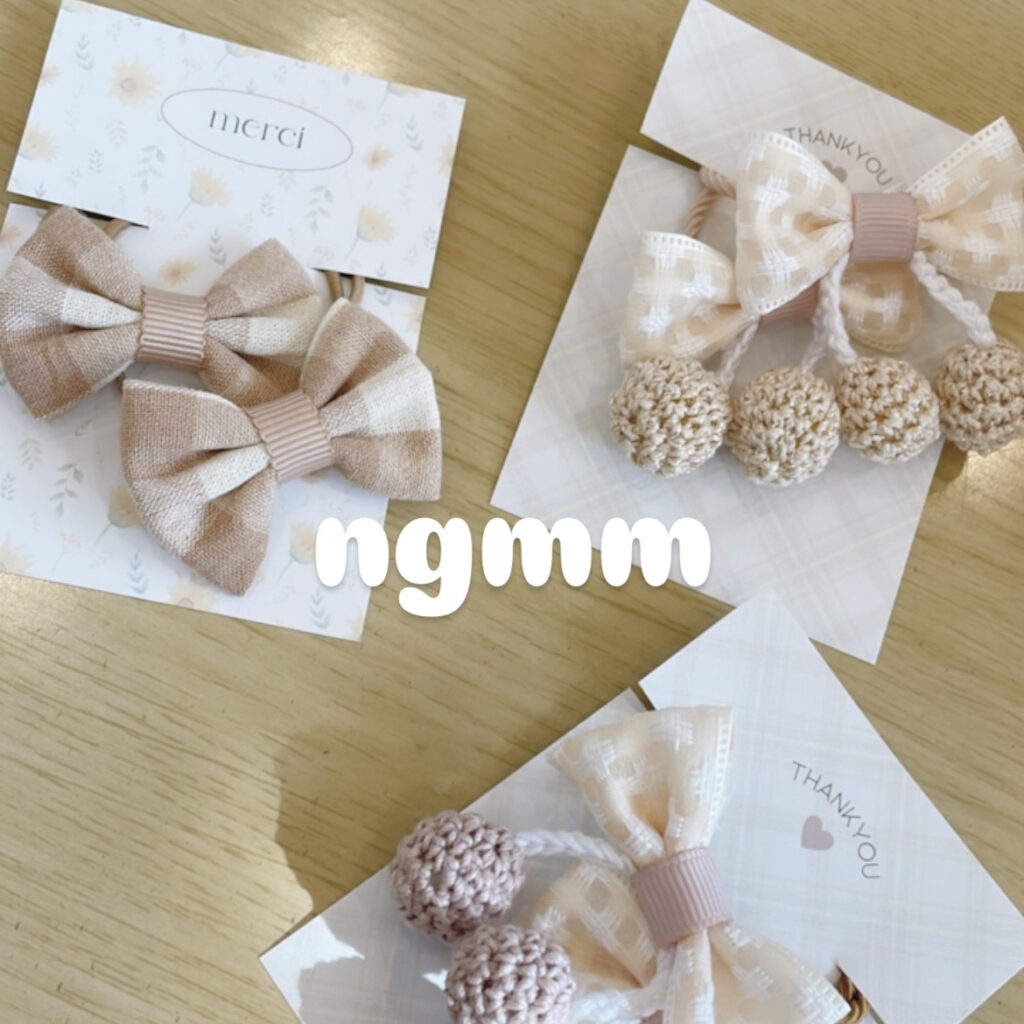 カラフルで可愛い手のひらサイズの布小物とヘアゴムなどのキッズアクセサリーの販売・シャカシャカキーホルダーのワークショップ